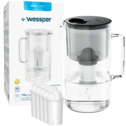 Das Set enthält insgesamt 6 Wasserfilter: 1 befindet sich in der Kanne und 5 Ersatzpatronen.