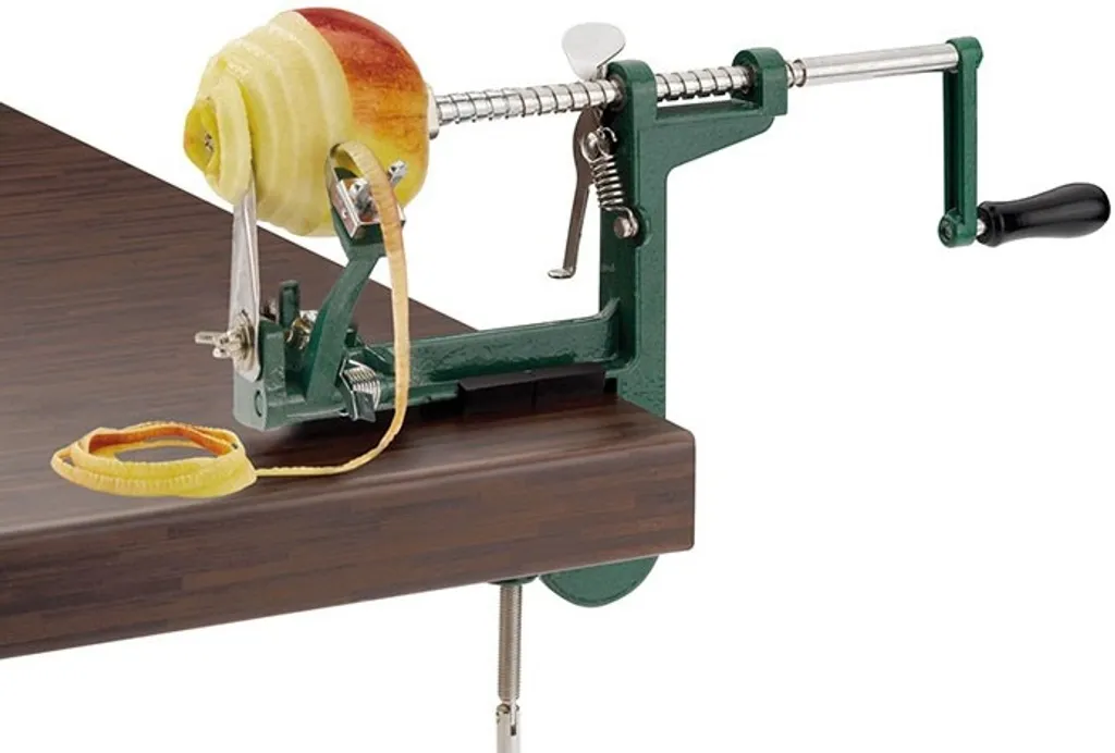 Wenn Sie eine große Menge Äpfel schälen möchten, ist dieses Westmark Apfelschälgerät die Lösung! Mit diesem Apfelschälgerät können Sie einfach und schnell eine große Menge Äpfel aus ihrer Schale entfernen. Sehr praktisch und einfach! Diese Apfelschälmaschine eignet sich auch sehr gut zum Abschälen von Birnen!