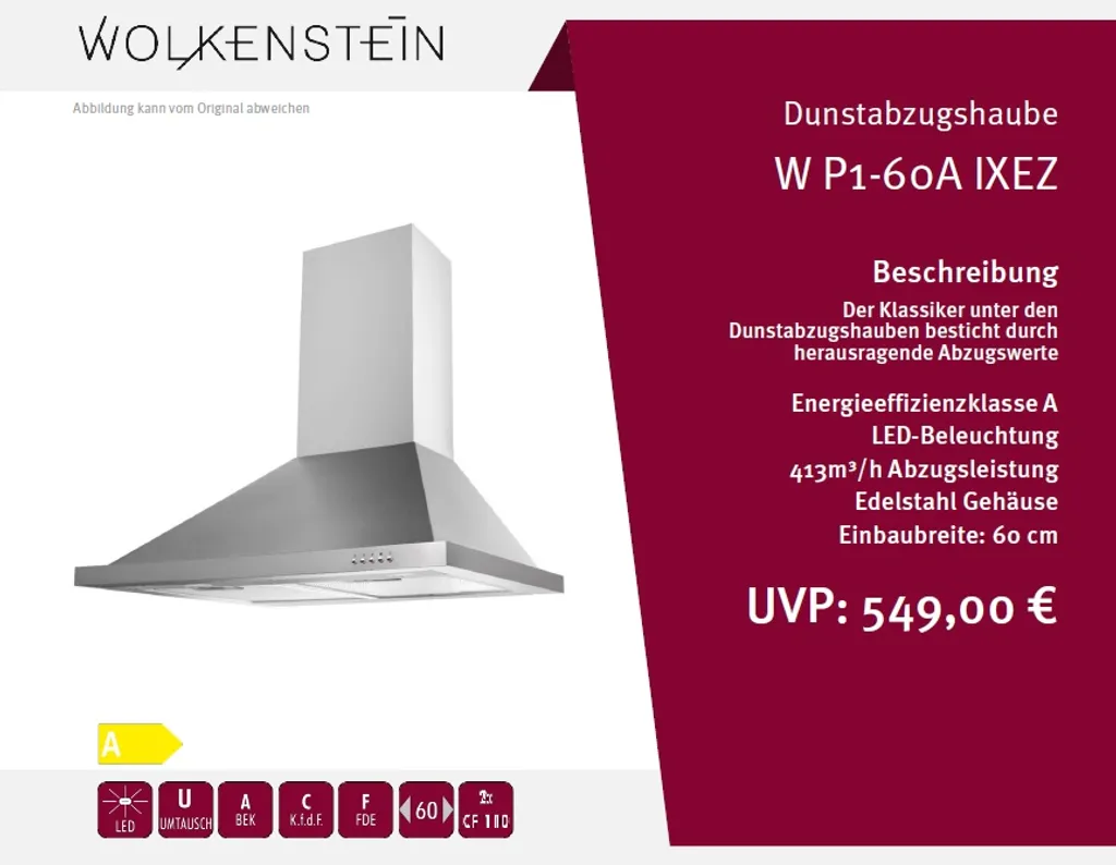 Wolkenstein Dunstabzugshaube W PI-60A IXEZ