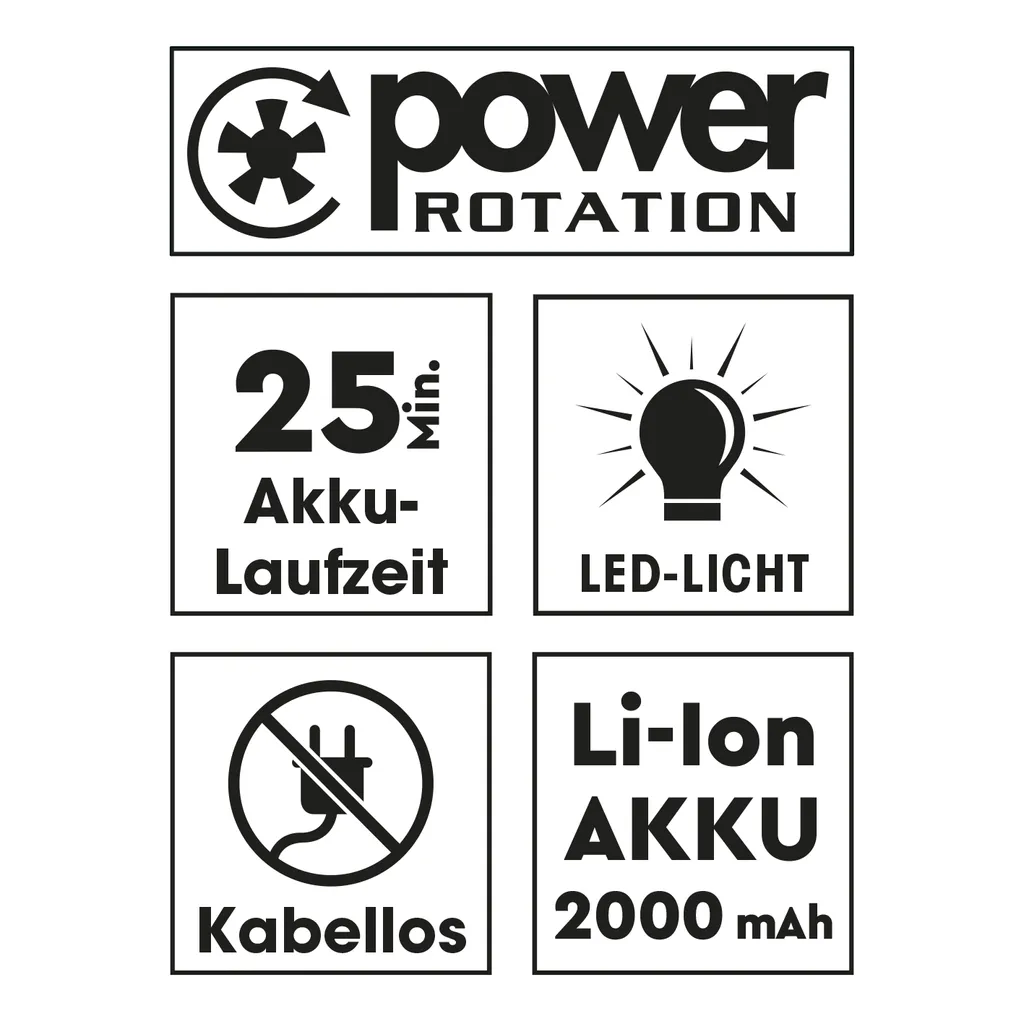 - Akku Betriebsdauer: ca. 20-30 Minuten (bei voll aufgeladenem Akku)
